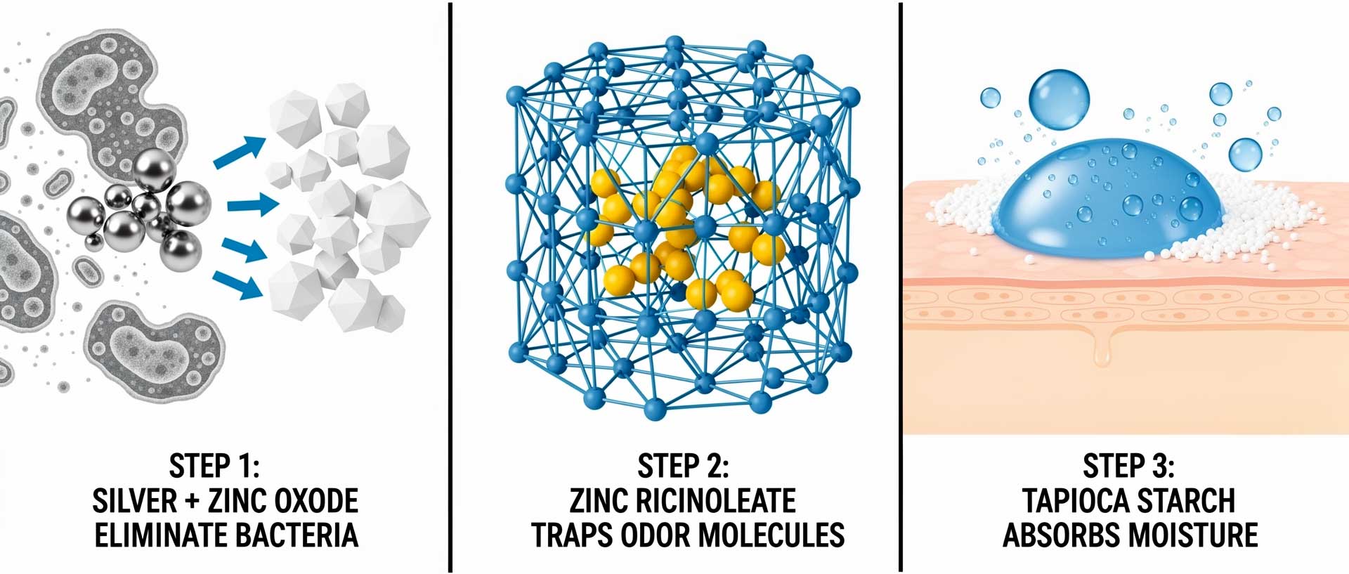 Works everywhere: Underarms, feet, groin, inner thighs, under breasts. One formula neutralizes all five bacteria types that cause body odor.